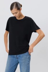 Das Short Sleeve Boyfriend T-Shirt in Ivory von ÉTERNE ist ein unkomplizierter Allrounder mit unisex Appeal. Gefertigt aus einem soften Baumwoll-Modal-Mix, überzeugt es durch seine entspannte Passform, den leicht offenen Ausschnitt und das minimalistische Design. Ein Everyday-Essential, das sich mühelos stylen lässt – ob zu Denim, Slip Skirt oder unter einem Blazer.